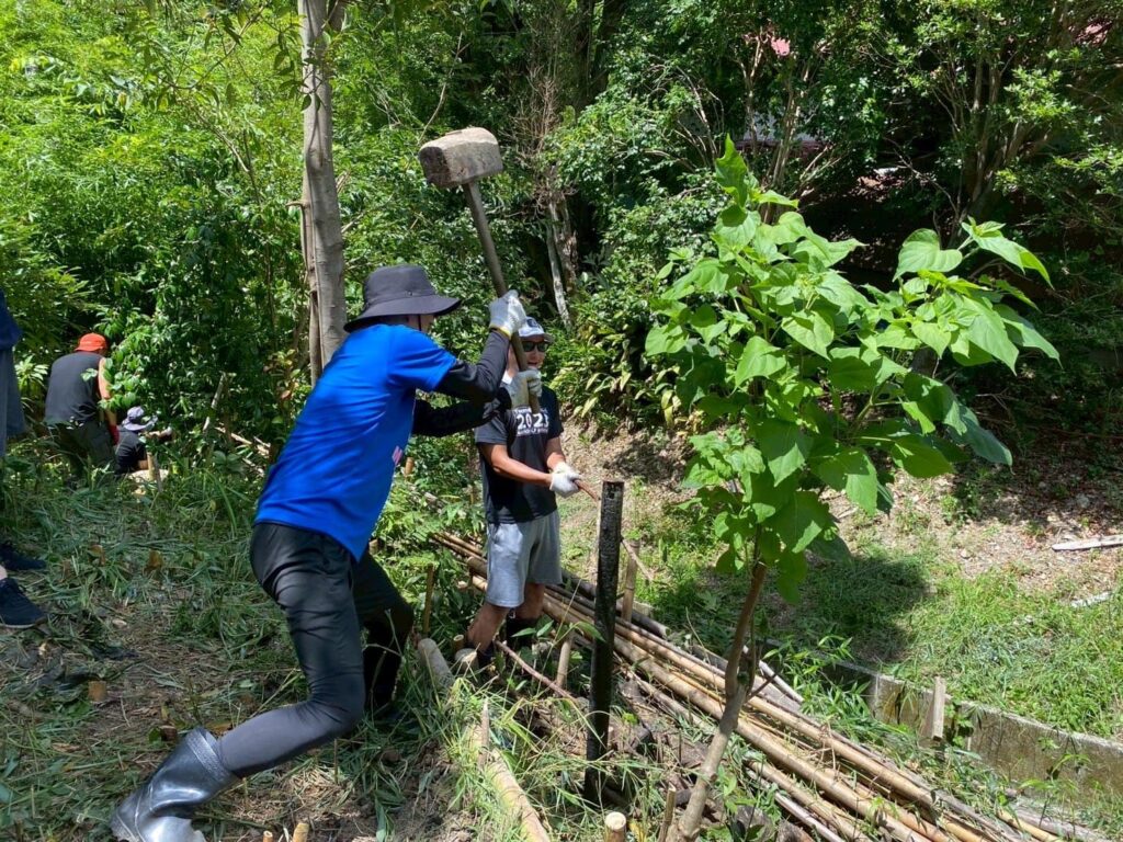 特徴としては「美味しい魚介類・米・野菜・果物は山の健康から!」を意識し、今昔の土壌改善技術を活かした里山の保全活動・土木作業を行っています。
